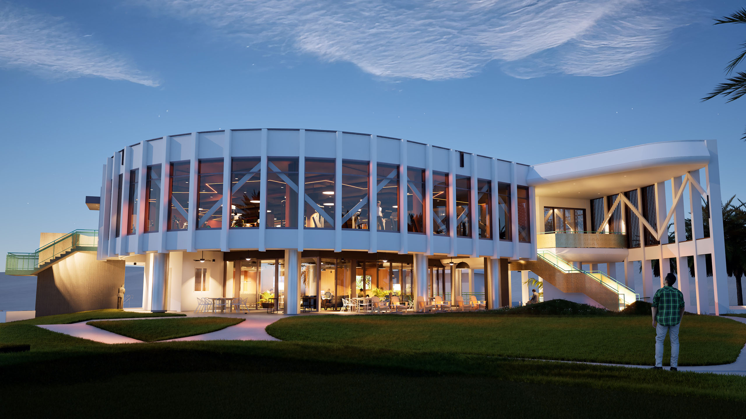 The Golden Beach Wellness Center is a new civic facility designed to serve as both a health-focused amenity and a community landmark for the Town of Golden Beach. Inspired by the geometry of a nautilus shell, the building’s spiral form organizes movement, light, and structure into a continuous spatial experience. Fitness areas, gathering spaces, and wellness functions unfold along a curved circulation path that reinforces both physical activity and social connection. Beyond its formal expression, the project responds to the realities of coastal South Florida — addressing hurricane resistance, material durability, and long-term resilience. The structure balances sculptural presence with practical performance, ensuring the building functions as both architecture and infrastructure. The result is a civic space that promotes health, community, and identity — an architectural gesture rooted in place.