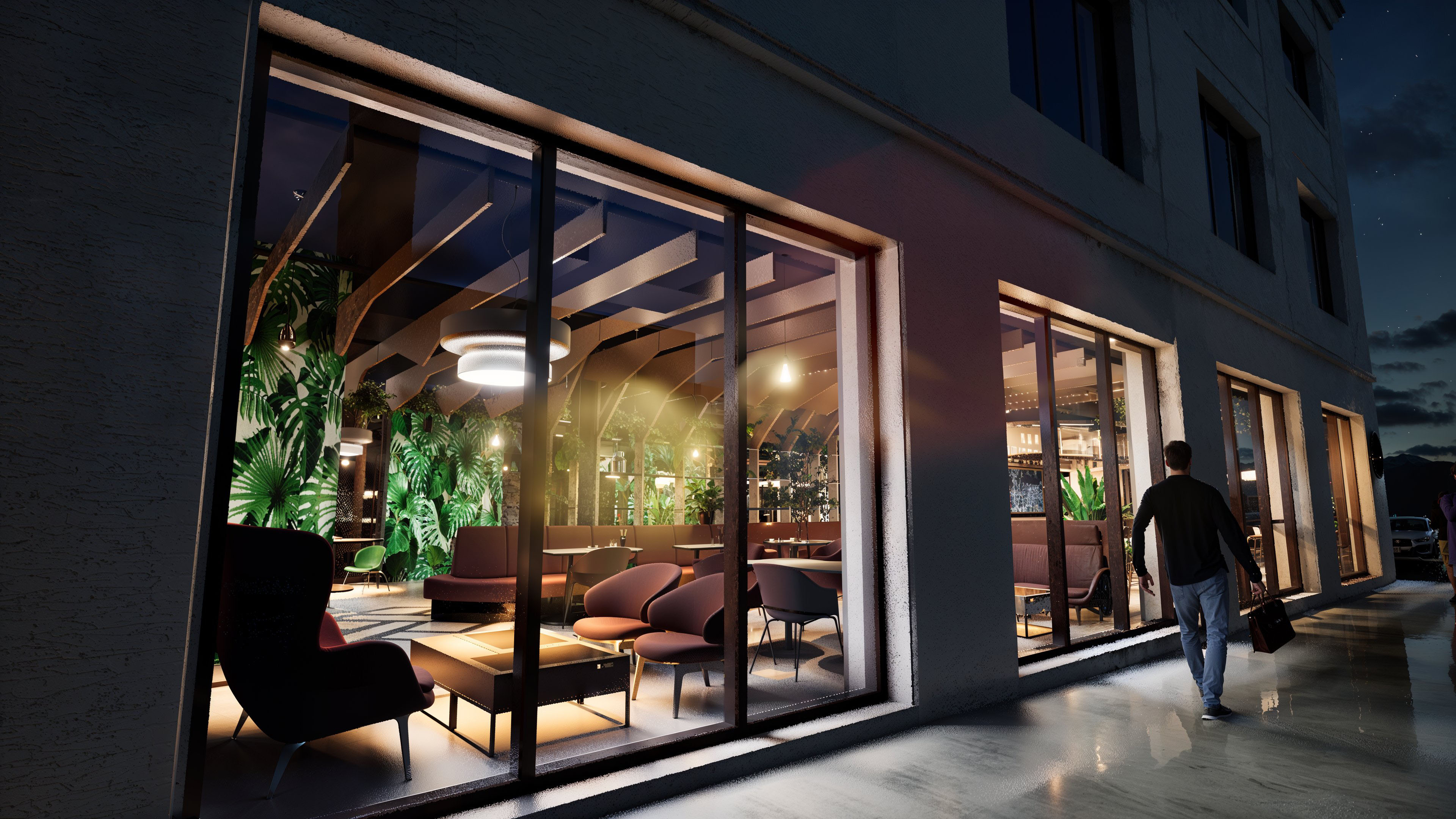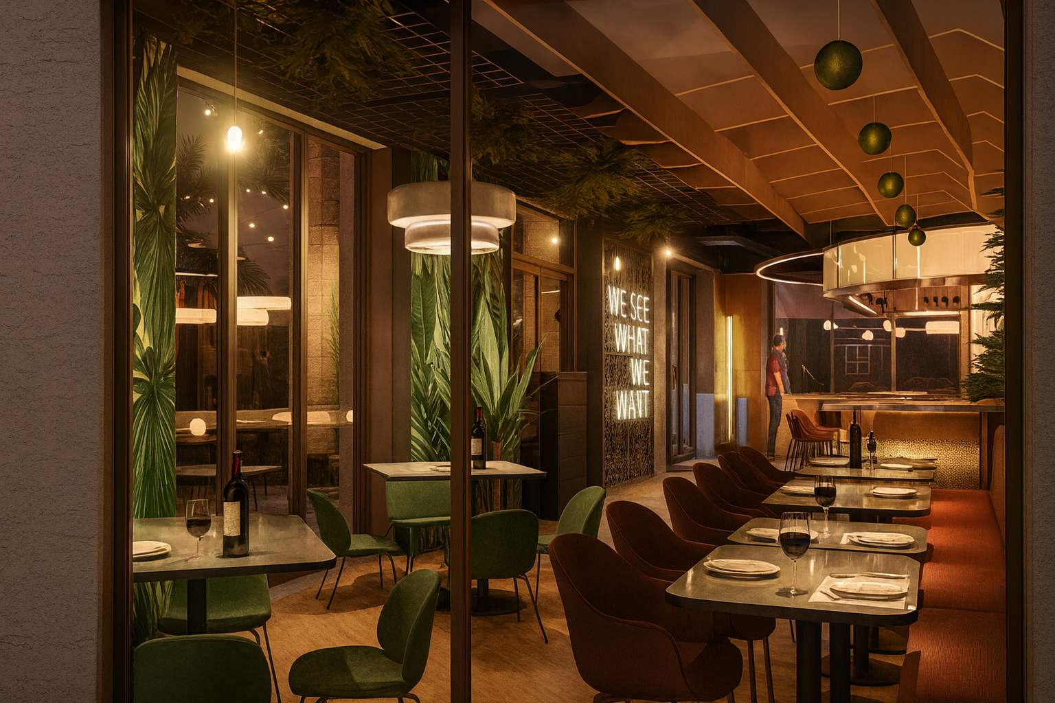 Urban Roast is a hospitality renovation located in the heart of downtown West Palm Beach. The project repositions a historic ground-floor retail space as an active café and dining venue, anchored by a commercial kitchen and expanded seating that connects interior space to a private courtyard garden. The design required careful coordination with city zoning, landlord approvals, and mechanical infrastructure. Introducing a full kitchen into an existing building meant routing exhaust and rooftop equipment through a constrained structure while preserving the character of the original façade. The result is a layered urban experience — street presence at the sidewalk, energy at the bar, and intimacy in the courtyard — demonstrating how thoughtful design can unlock new life in existing buildings.